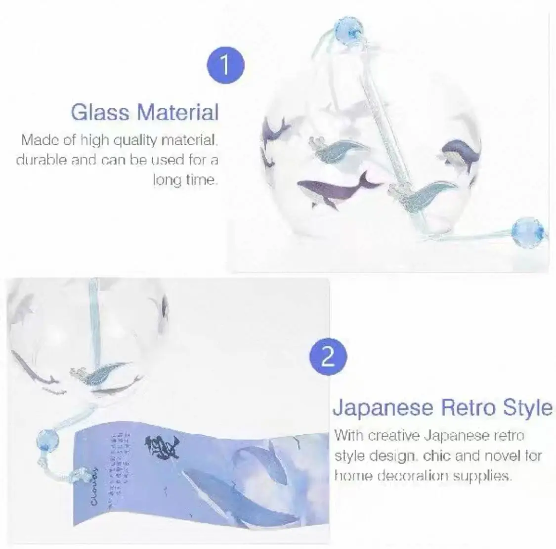 جرس رياح بتصميم الحوت الازرق بدزاين ياباني انيق