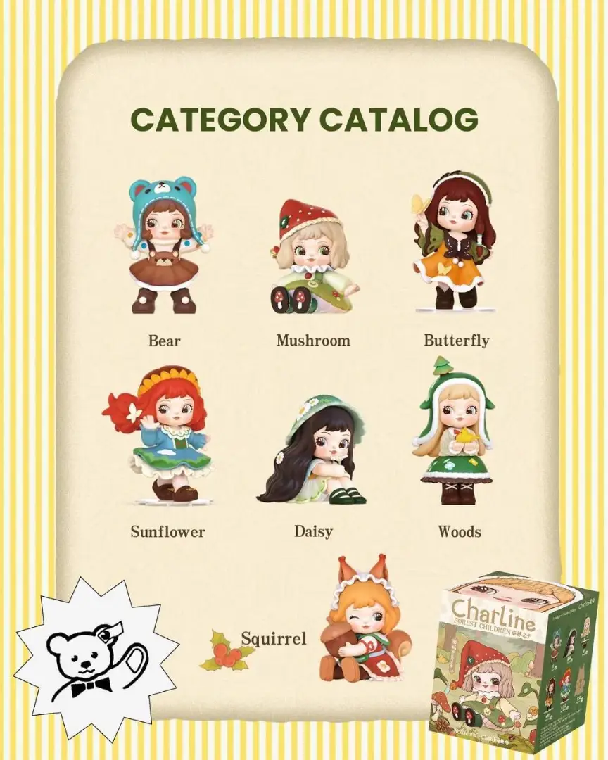 بلايند بوكس ـ الشخصيات هي : حارسة الفطر _ حارسة الغابة_ اميرة الفراشات _الدب _زهرة الشمس _ديزي