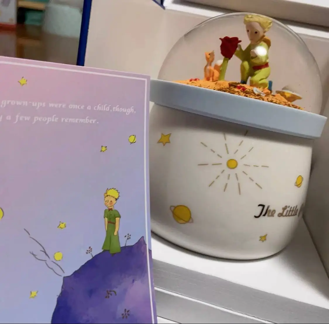 داخل البلوره مجسم الامير وزهرته الجميله