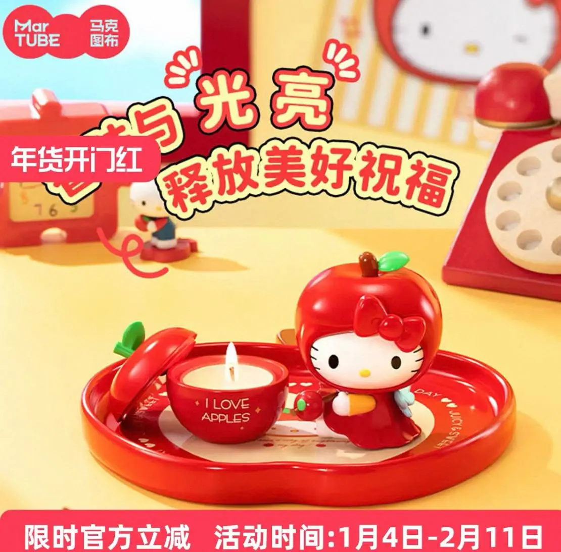مع حاملة شمعه شكل تفاحه حمراء