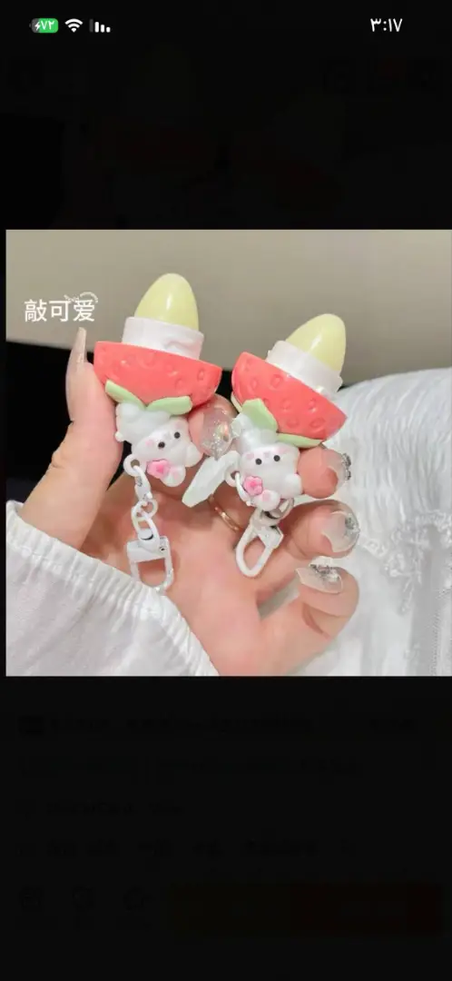 • الوظيفة: مرطب للشفاه، يهدف إلى ترطيب وتغذية الشفاه • التصميم: يتميز بتصميم كرتوني جذاب، ويأتي مع حلقة تعليق (Keychain) لتتمكني من تعليقه في الحقيبة أو المفاتيح، مما يجعله إكسسواراً أنيقاً وعملياً في نفس الوقت. • الفئة المستهدفة: حتى للاطفال " (من عمر صفر فما فوق)، مما يشير إلى أن تركيبته ما تكون آمنة ولطيفة.