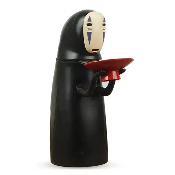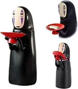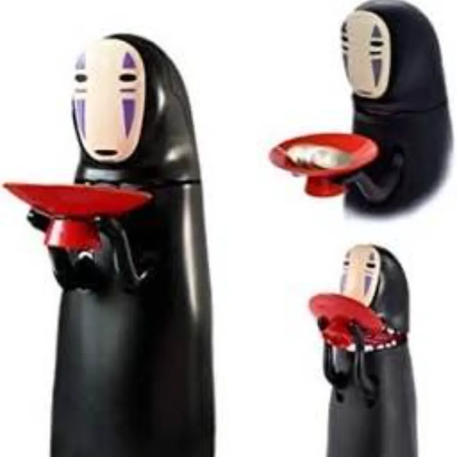 صندوق توفير مصممة على شكل شخصية "كا اوناشي" (Kaonashi)، المعروفة بـ "لا وجه" (No-Face)، وهي واحدة من أشهر الشخصيات في فيلم الأنمي الشهير "المخطوفة" (Spirited Away) من إنتاج استوديو جيبلي. مواصفات المنتج • التصميم: الشخصية تحمل وعاءً أحمر أمامها. • طريقة العمل: تعتمد الحصالة على تقنية استشعار الوزن؛ فعندما تضع عملة معدنية في الوعاء، تقوم الشخصية بـ "ابتلاعها" تلقائيًا داخل الحصالة. • المؤثرات الصوتية: تتميز بوجود مؤثرات صوتية (صوت تجشؤ) بعد عملية ابتلاع العملة، وهو ما يضفي طابعاً فكاهياً ومطابقاً لأجواء الفيلم